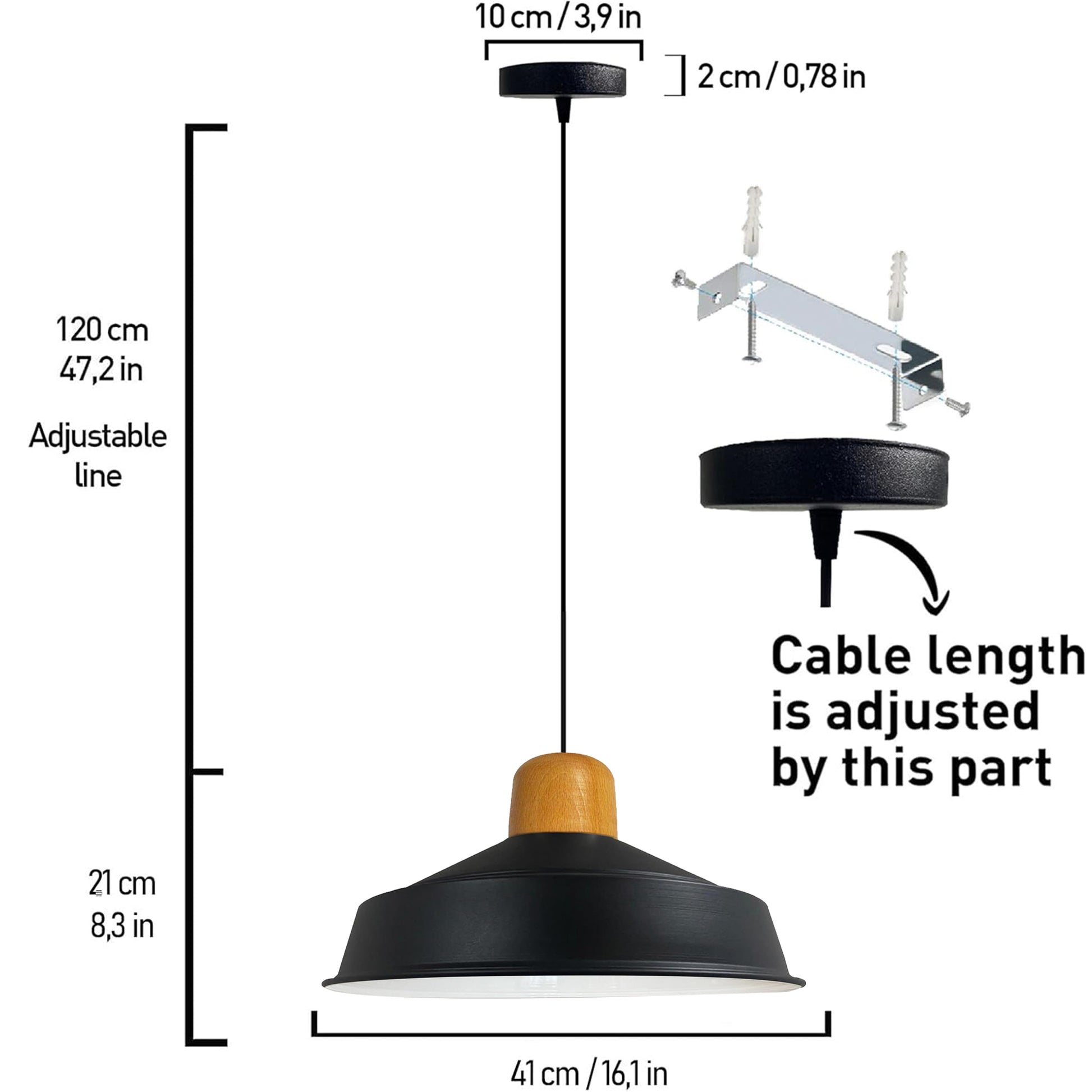 TECHNISCHE INFORMATIONEN & HOCHWERTIGE MATERIALIEN: Die Pendelleuchte besteht aus Metall (Größe: wie abgebildet), Lampensockel: E27. Es können maximal 60 Watt LED-, Halogen- und Rustiklampen verwendet werden. Leuchtmittel nicht im Lieferumfang enthalten. Spannung: 120-240V. Kann mit Dimmer verwendet werden. GRÖSSEN & EINSTELLBARE HÖHE: Durchmesser 40 cm. Der Durchmesser der runden Deckenhalterung beträgt 10 cm. Im Lieferumfang des Produkts ist ein robustes und Längen-verstellbares 120 cm kabel enthalten. Die Kabellänge kann je nach Ihren Vorlieben und Ihrem Design angepasst werden und kann je nach Wunsch höher oder niedriger hängen EINFACHE INSTALLATION: Die Hängelampe ist leichtgewichtig und sehr einfach zu installieren. Die Verbindung zwischen Lampenoberteil und Lampenschirm ist konsolidiert, um Ihre Installation und Nutzungserfahrung zu vervollständigen. Hängen Sie diese Pendelleuchte einfach an die Decke und passen Sie dann das Kabel an Ihre Deckenhöhe an – kann an einer schrägen oder gewölbten Decke aufgehängt werden. Mehrere Kücheninselleuchten können in angemessenem Abstand nebeneinander aufgehängt werden Made in Türkiye